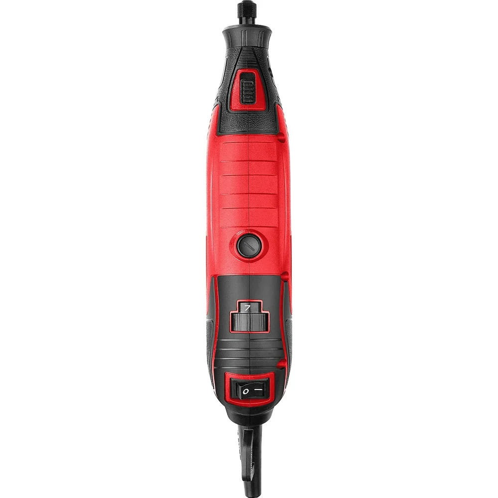 Комплектация Электрический гравер; Гибкий вал; Телескопический штатив; Кронштейн штатива; Цанга 3.2мм; Шарошка абразивная на шпильке цилиндрическая; Шарошка абразивная на шпильке коническая; Шарошка алмазная коническая; Шарошка алмазная сферическая; Шарошка по дереву цилиндрическая; Сверло; Цилиндр шлифовальный D9 мм - 5 шт; Цилиндр шлифовальный D12 мм - 5 шт; Абразивный шлифовальный круг по металлу - 6 шт; Отрезной абразивный круг - 5 шт; Войлочный полировальный круг D12 мм - 3 шт; Войлочный полировальный круг D25 мм - 2 шт; Державка для шлифовальных цилиндров D9 мм; Державка для шлифовальных цилиндров D12 мм; Державка для войлочных кругов; Державка для отрезных кругов; Щетка-крацовка; Диск отрезной алмазный; Ключ гаечный; Руководство по эксплуатации; Кейс