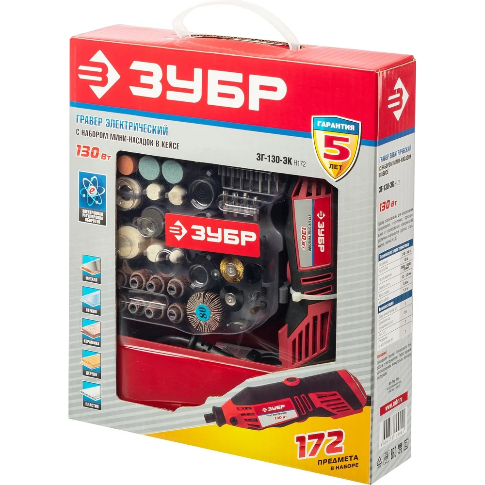 Купить Электрический гравер ЗУБР с набором мини-насадок, 172 предмета ЗГ-130ЭК H172 по лучшей цене с доставкой - интернет магазин №1 в России