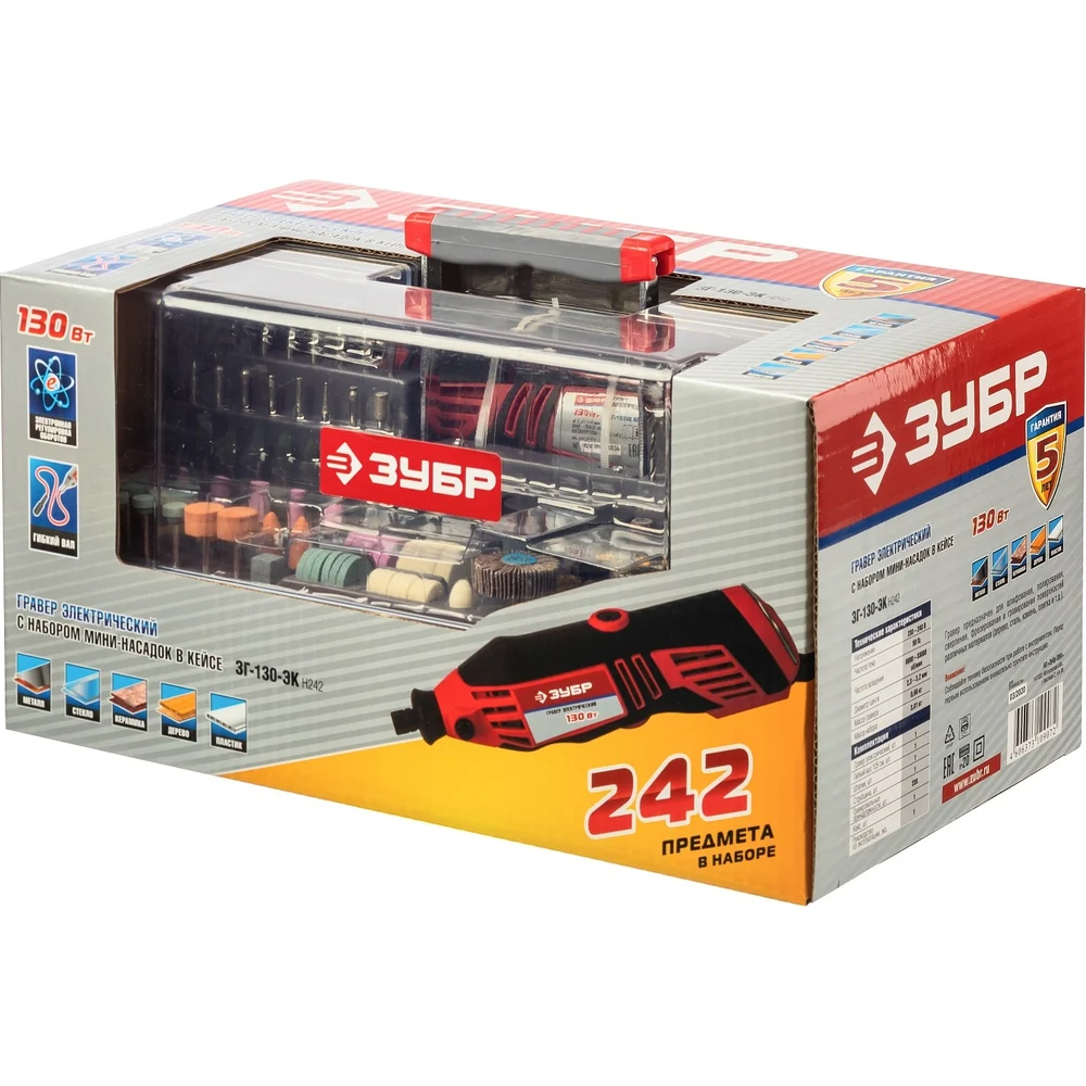 Купить Электрический гравер ЗУБР с набором мини-насадок, 242 предмета ЗГ-130ЭК H242 по лучшей цене с доставкой - интернет магазин №1 в России