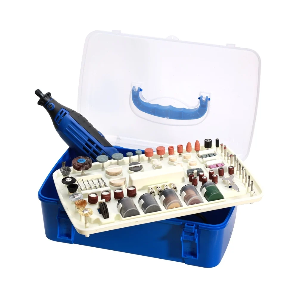 Комплектация Набор аксессуаров 211 шт; Гибкий вал; Штатив; Пластиковый кейс