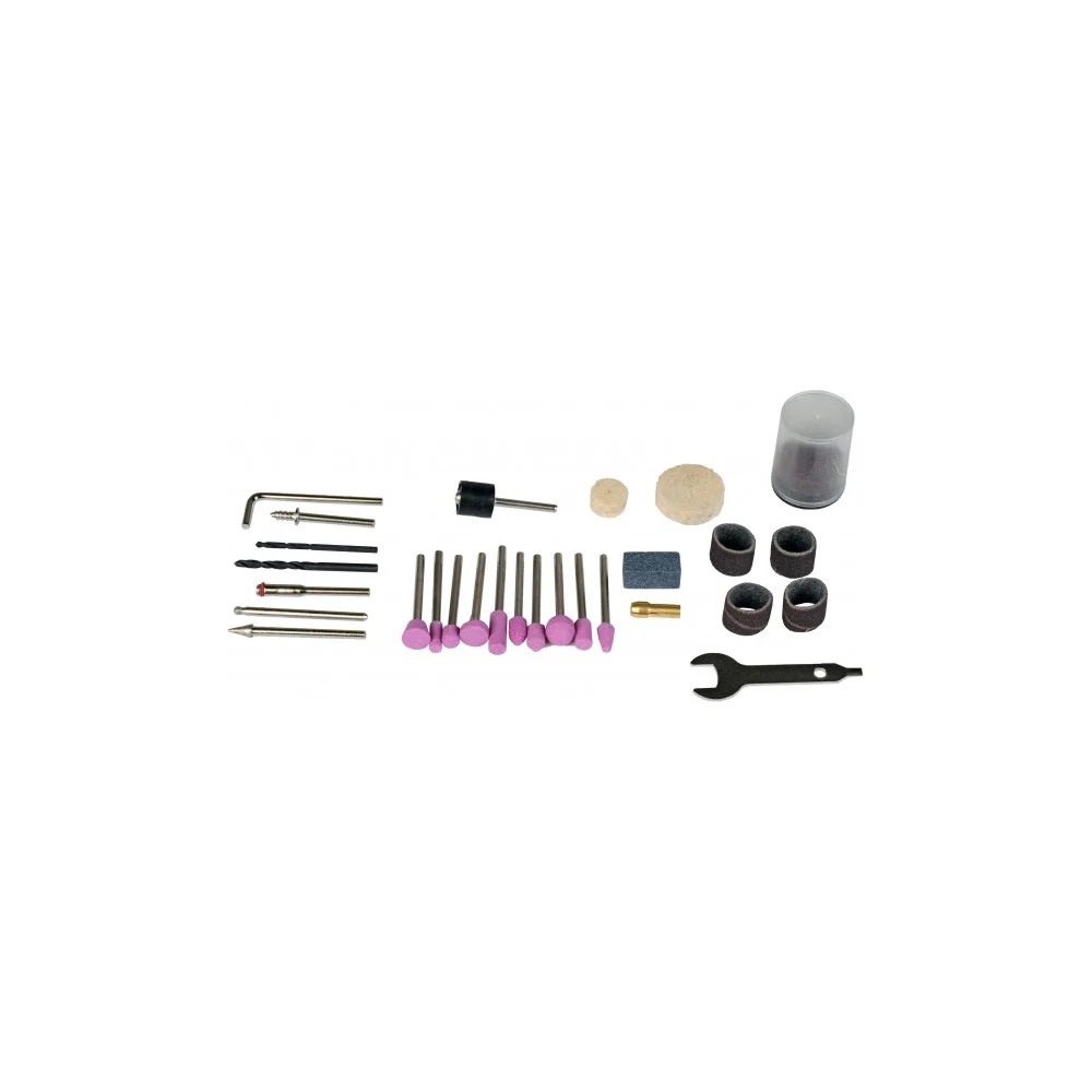 Комплектация Прямая микро-шлифмашина – 1 шт; Набор насадок – 1 шт; Гибкий вал – 1 шт; Стойка для подвеса – 1 шт; Ключ – 1 шт; Кейс - 1 шт; Руководство по эксплуатации – 1 шт