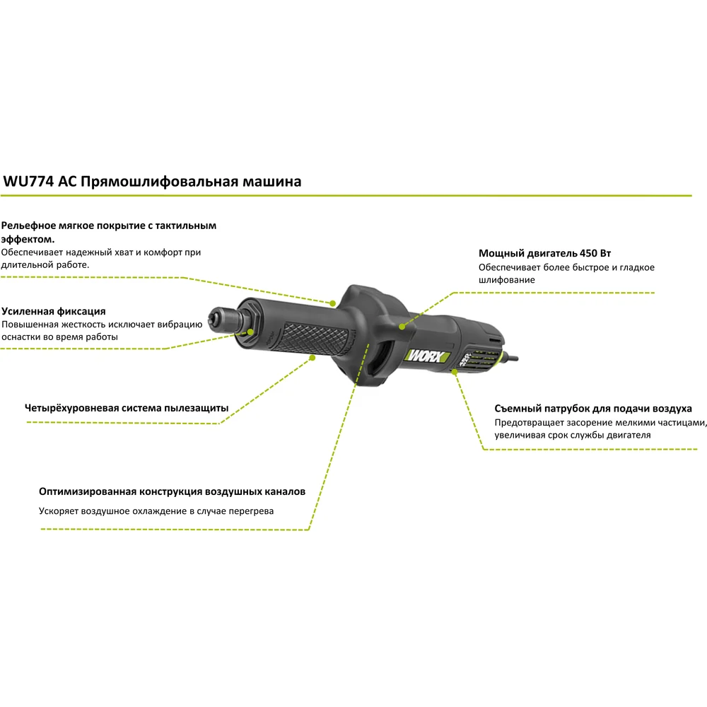 Купить Прямошлифовальная машина WORX Professional 450 Вт, 6 мм WU774 по лучшей цене с доставкой - интернет магазин №1 в России