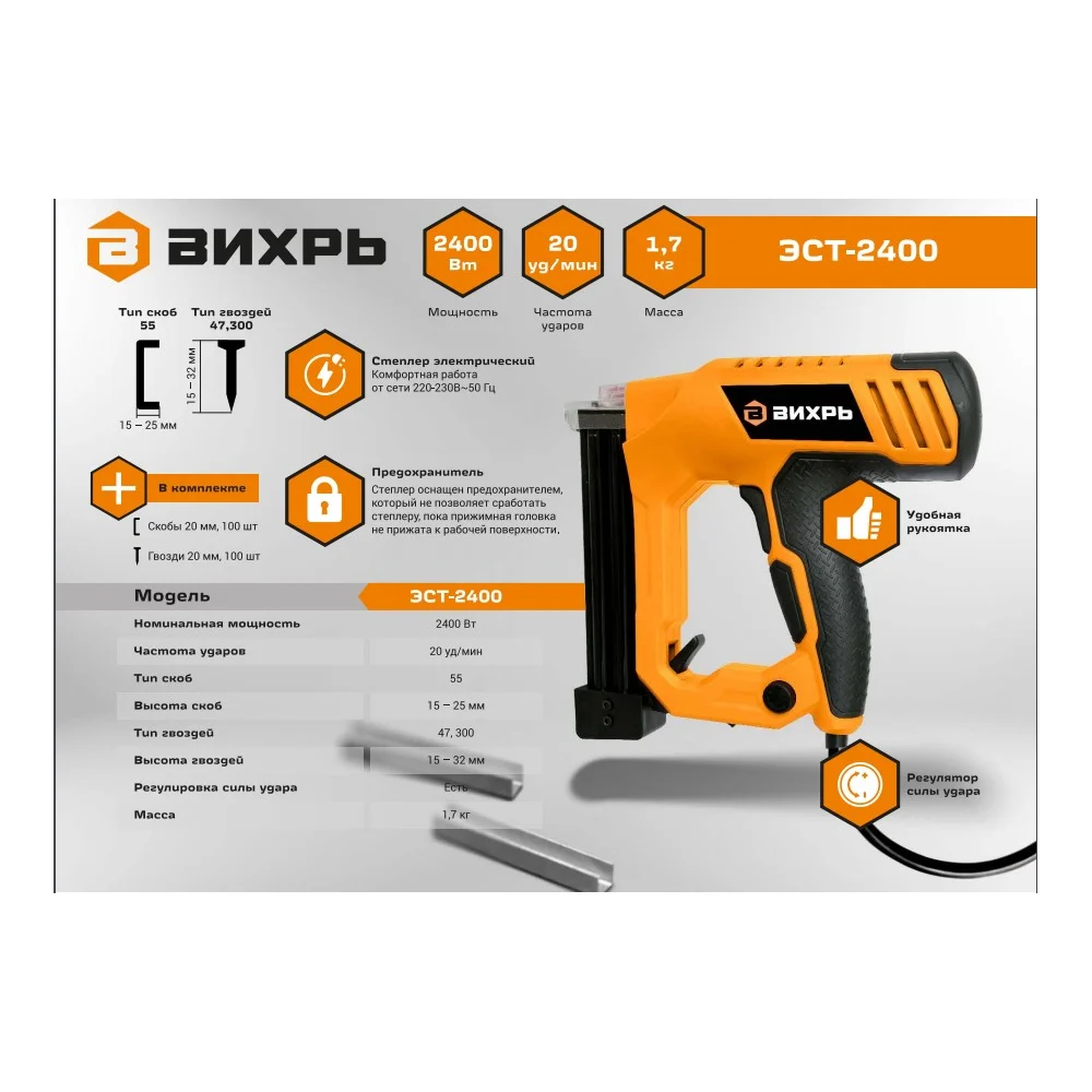 Купить Степлер электрический Вихрь ЭСТ-2400 72/4/8 по лучшей цене с доставкой - интернет магазин №1 в России