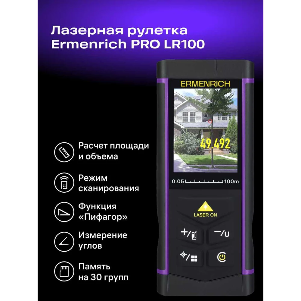 Купить Лазерная рулетка Ermenrich (Эрменрих) LR100, с камерой 84652 по лучшей цене с доставкой - интернет магазин №1 в России