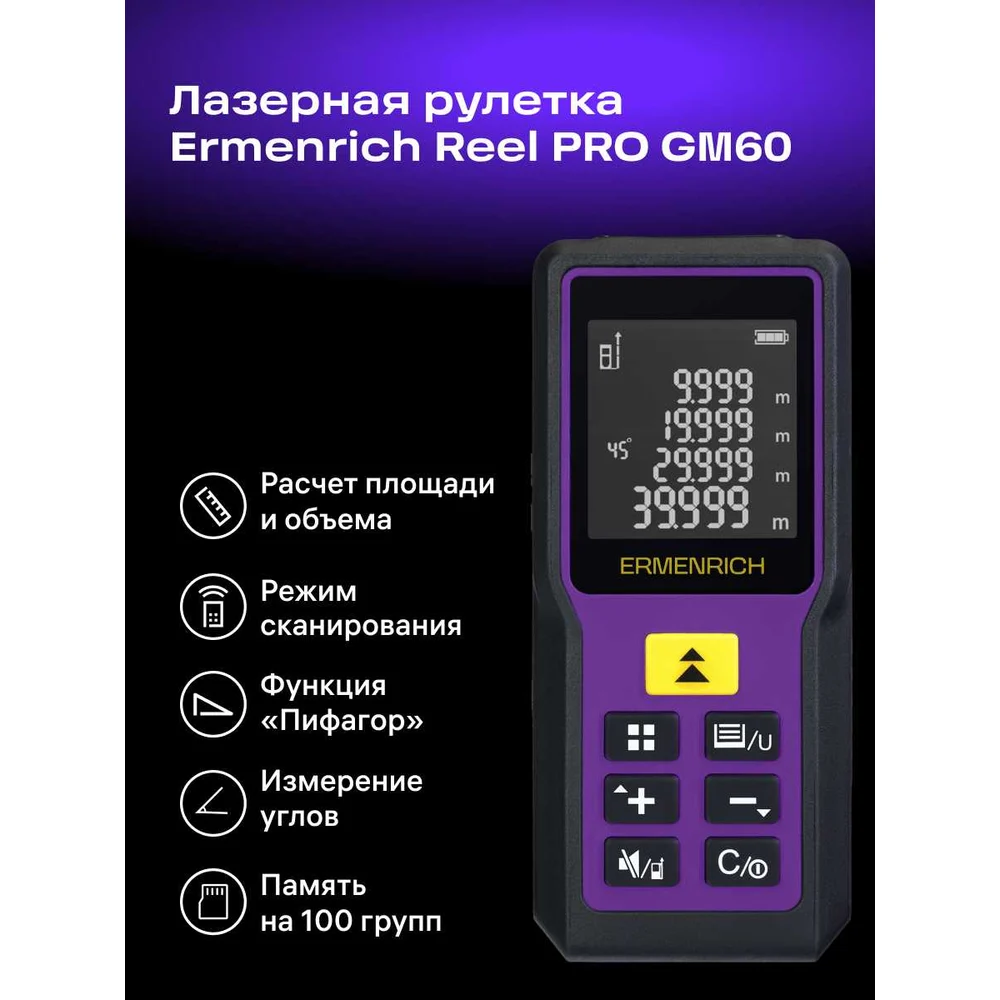 Купить Лазерная рулетка Ermenrich (Эрменрих) Reel GM60, фиолетовый 84645 по лучшей цене с доставкой - интернет магазин №1 в России