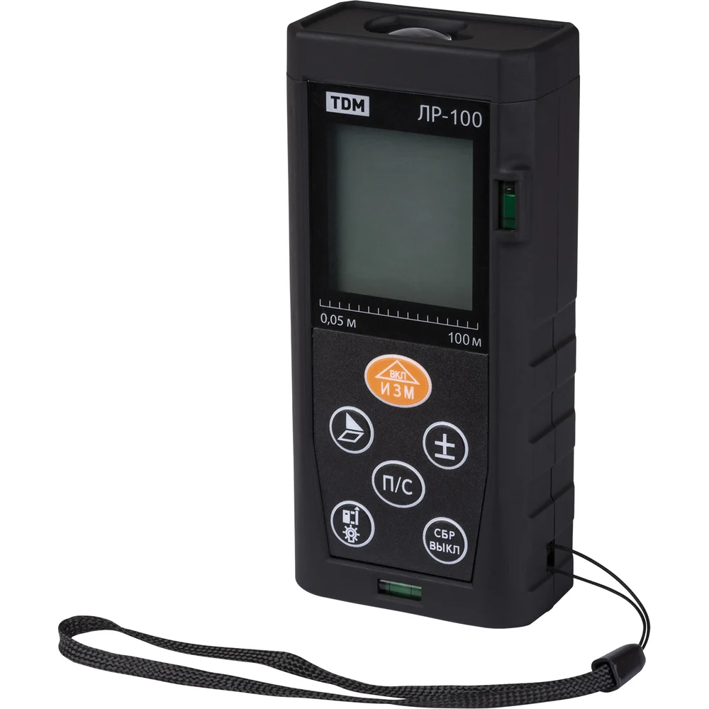 Лазерная рулетка TDM ELECTRIC ЛР-100 дальность 100 м, точность 2 мм, подсветка, IP54, 2хAAA, “Алмаз” SQ1018-0203