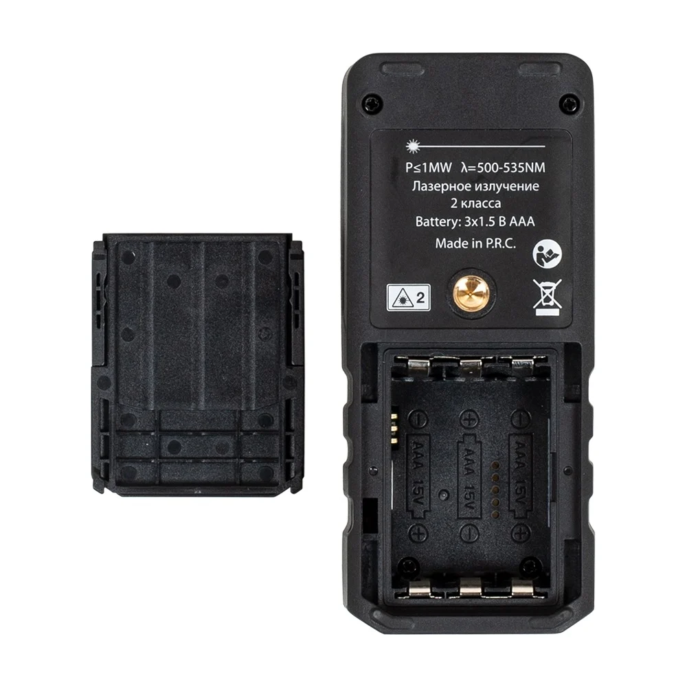Комплектация Лазерный дальномер; Батарейки 3 шт. ААА 1,5В; Отражающая пластина; Ремешок; Инструкция; Чехол; Упаковка