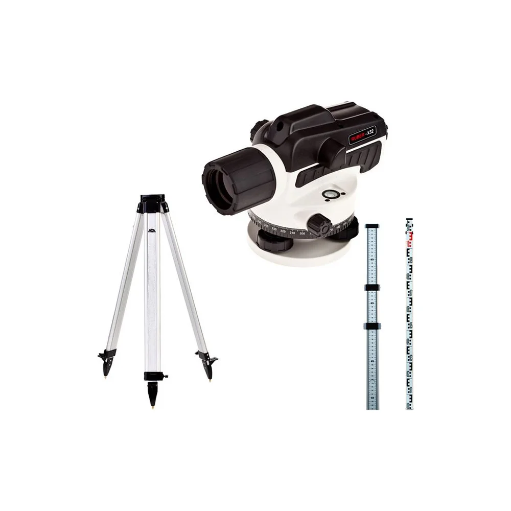 Комплектация Нивелир Ruber 32; Ключ для юстировки нитей; Шестигранный ключ; Нитяной отвес; Свидетельство о поверке (электронный формат сертификата https://fgis.gost.ru/fundmetrology/cm/results); Рейка STAFF 3; Пузырьковый уровень; Матерчатый чехол для рейки; Штатив на винтах Light S; Картонная коробка для штатива; Руководство по эксплуатации; Пластиковый кейс для нивелира