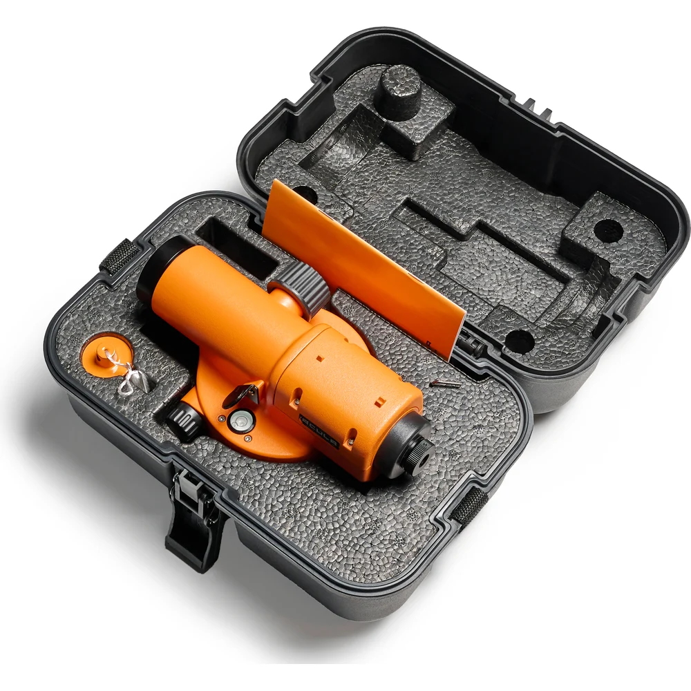 Комплектация Оптический нивелир; Ключ для юстировки нитей; Шестигранный ключ; Нитяной отвес; Транспортировочный кейс