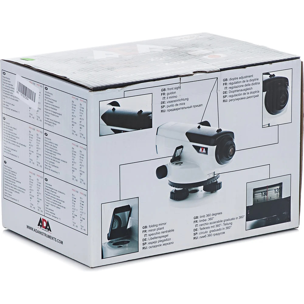 Профессиональный оптический нивелир ADA PROF X32 с поверкой (нивелир, кейс, мелкий инструмент, нитяной отвес, инструкция, свидетельство поверки) А00199