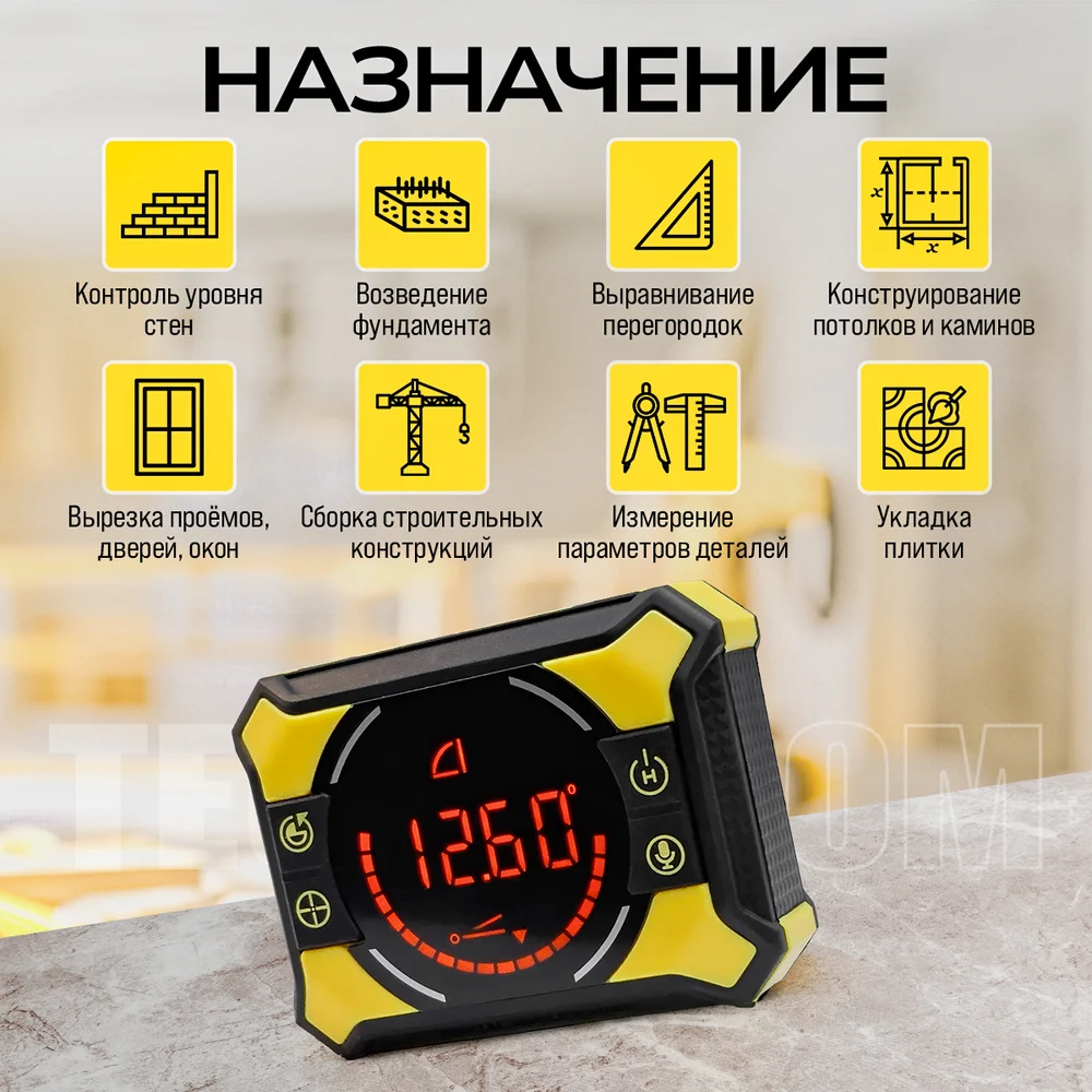 Купить Электронный уровень-угломер с лазерными направляющими TECHNICOM 0-360°, ЖК дисплей, 2 магнита, АКБ 650 мАч, автокалибровка, автоотключение, дальность 10м TC-LA905 по лучшей цене с доставкой - интернет магазин №1 в России