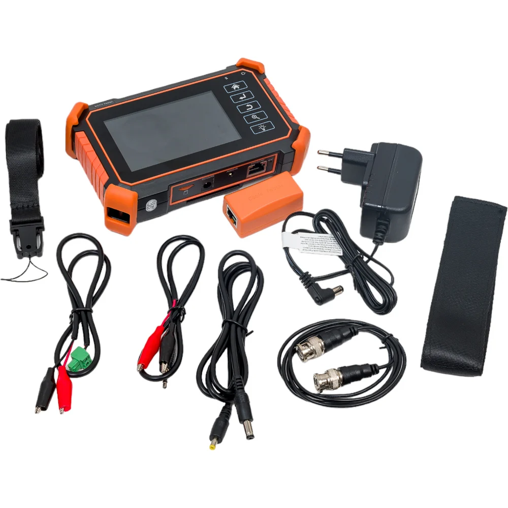 Комплектация Тестер TIP-H-4 – 1шт; Зарядное устройство AC 230V / DC 12V (1A) – 1шт; Комбинированный щуп для проверки обжимки, обнаружения кабельной трассы и определения метода подачи PoE – 1шт; Литий-ионный аккумулятор 7.4V, 2400mAh – 1шт; Кабель BNC-BNC – 1шт; Кабель 2pin – «крокодилы» – 1шт; Кабель DC-DC (5.5х2.1-4х1.7) – 1шт; Кабель TRS 3.5mm – «крокодилы» – 1шт; Ответное устройство 255 (проверка обжимки) – 1шт; Ремень для удержания – 1шт; Шнур для удержания – 1шт; Сумка – футляр для хранения – 1 шт; Краткое руководство по эксплуатации – 1шт; Упаковка – 1шт