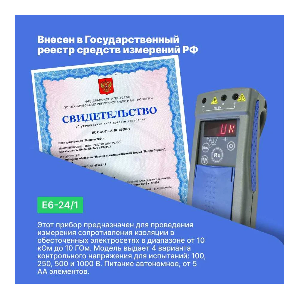 Купить Мегаомметр Радио-Сервис Е6-24/1 с поверкой 128058 по лучшей цене с доставкой - интернет магазин №1 в России