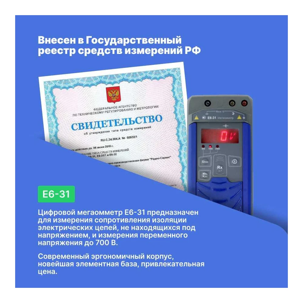 Купить Мегаомметр Радио-Сервис Е6-31 с поверкой 128059 по лучшей цене с доставкой - интернет магазин №1 в России