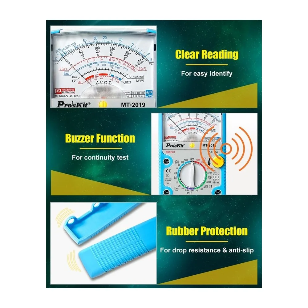 Купить Аналоговый мультиметр ProsKit MT-2019 С00040186 по лучшей цене с доставкой - интернет магазин №1 в России