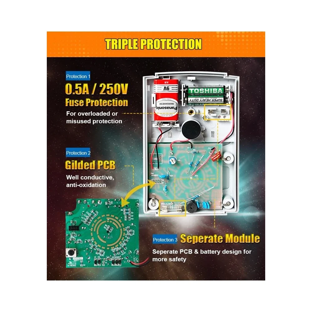 Количество и напряжение элементов питания 1х9В; 2х1.5B
