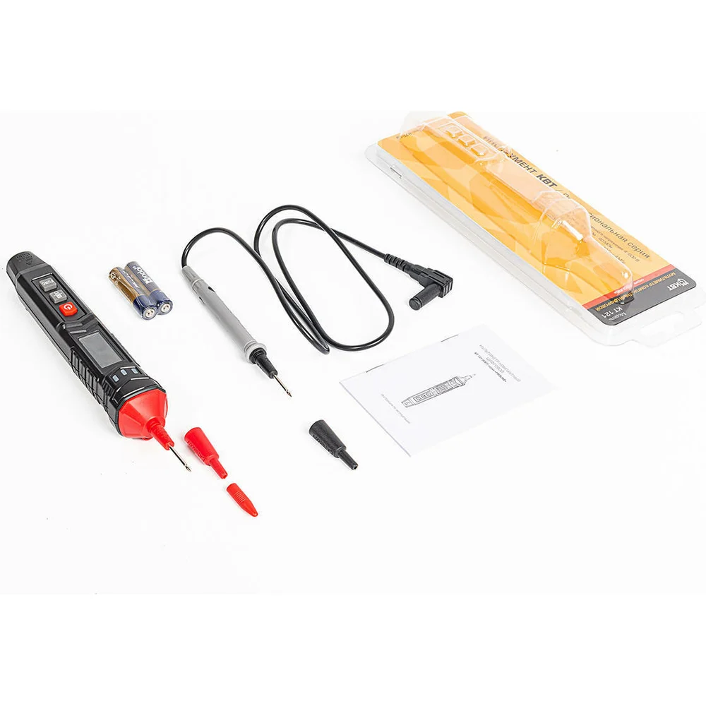 Комплектация Мультиметр; Измерительный щуп; Батарейки; Инструкция
