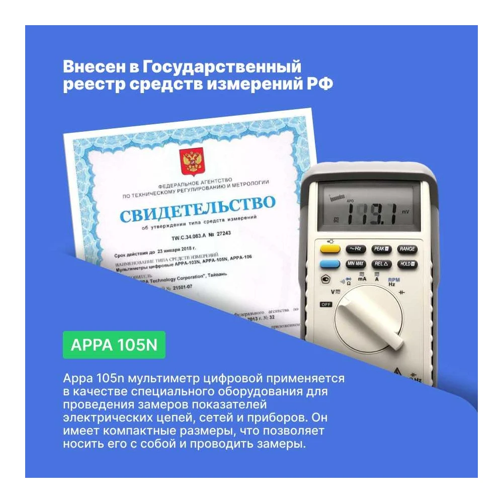 Купить Мультиметр APPA 105N по лучшей цене с доставкой - интернет магазин №1 в России