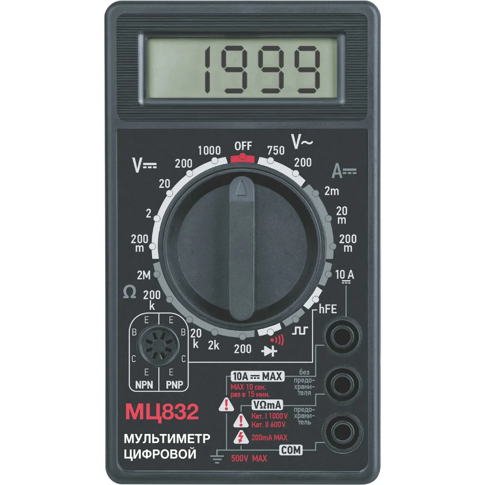 Купить Мультиметр цифровой СПЕЦ МЦ832, АС Макс изм напр.:750В, АС Mин изм напр.\чувств.100 mВ, DC макс изм напр.1000В, DC Мин иха напр./чувств. 0,1 mВ, DC Макси изм ток:10A, DC мин чувств. ток:0.1А 4106 по лучшей цене с доставкой - интернет магазин №1 в России