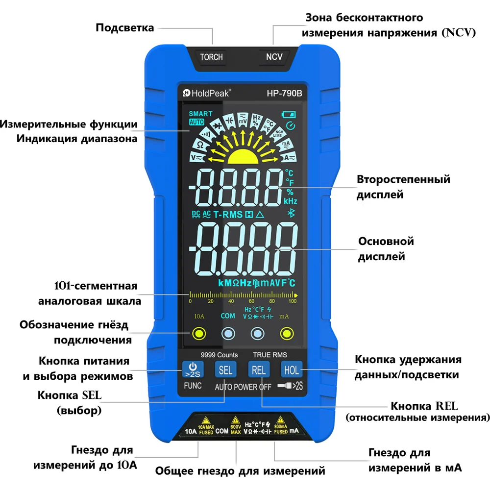 Купить Цифровой мультиметр HoldPeak HP-790B по лучшей цене с доставкой - интернет магазин №1 в России