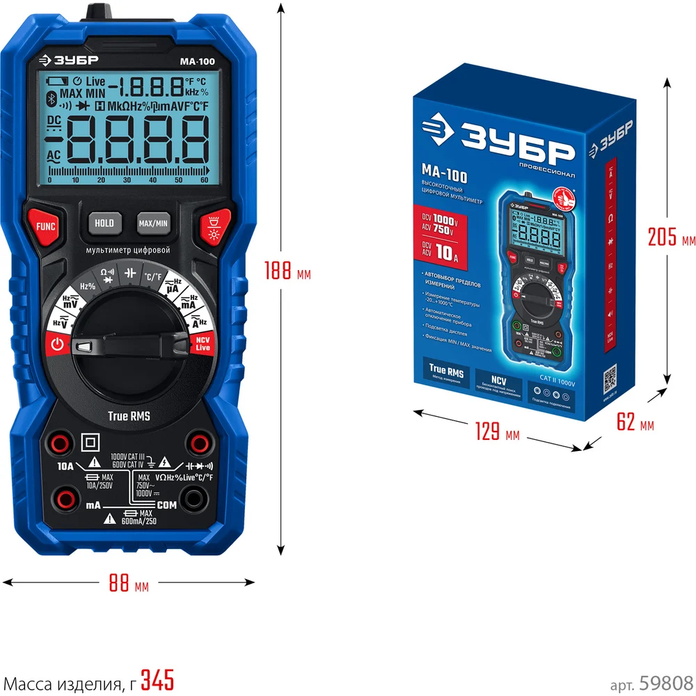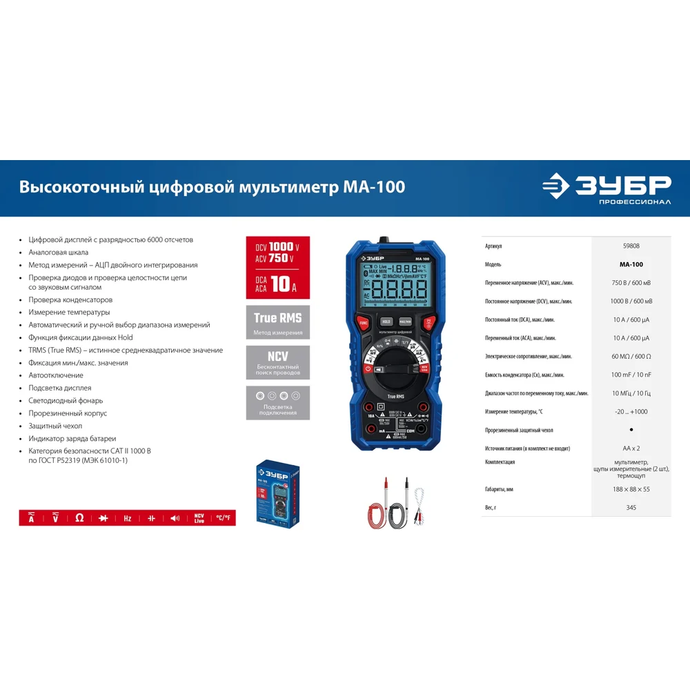 Купить Цифровой мультиметр ЗУБР МА-100 59808 по лучшей цене с доставкой - интернет магазин №1 в России