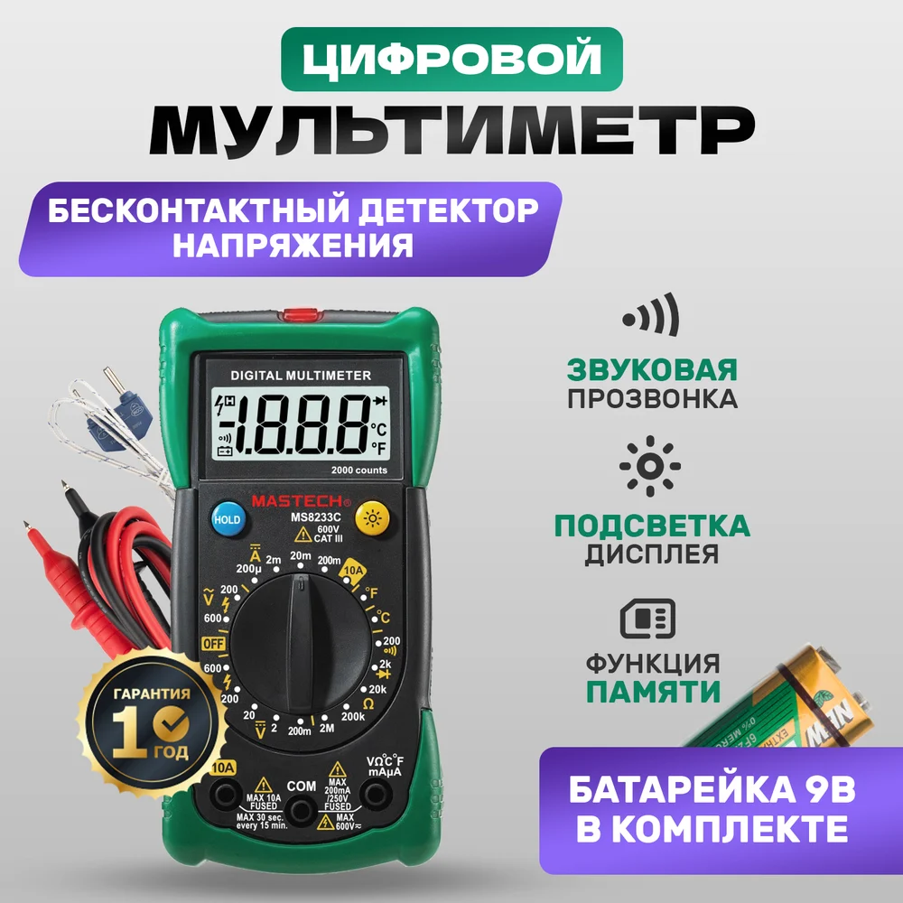 Купить Универсальный мультиметр MASTECH MS8233C 00-00000262 по лучшей цене с доставкой - интернет магазин №1 в России
