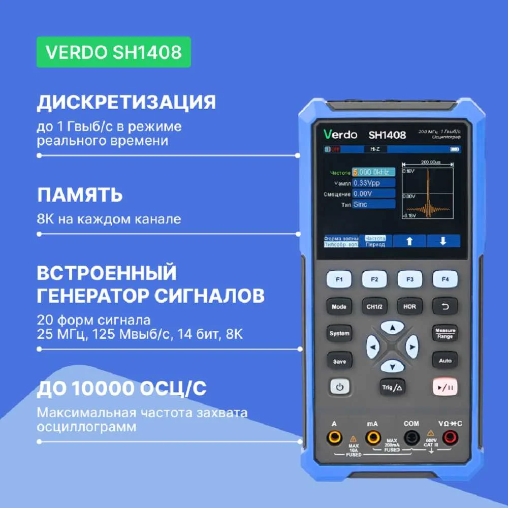 Купить Осциллограф-мультиметр с поверкой VERDO SH1408 200 МГц SH140800-СП по лучшей цене с доставкой - интернет магазин №1 в России