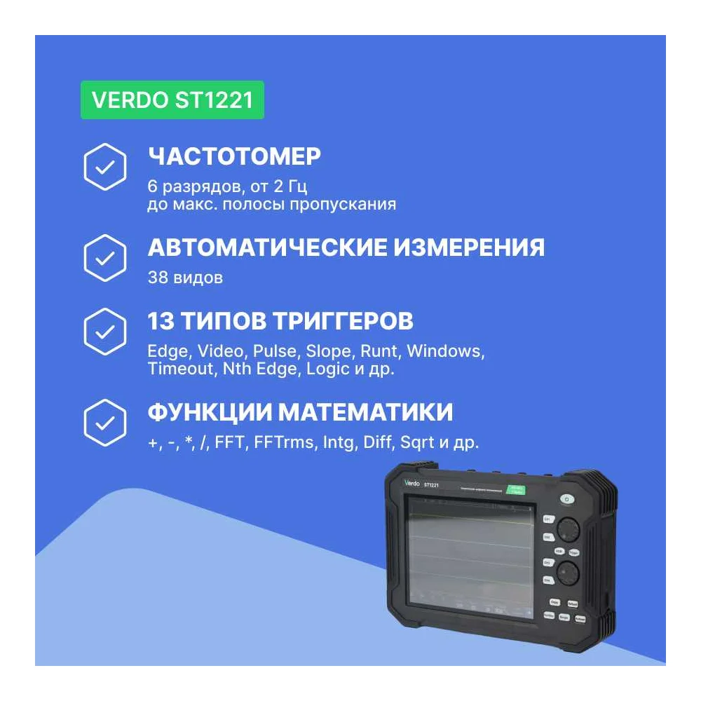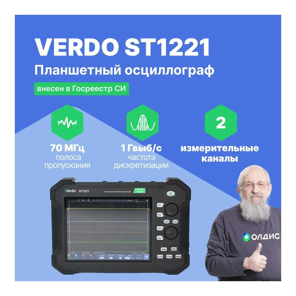 Осциллограф планшетного типа VERDO ST1221 70 МГц, 2 канала, 8 бит ST122100