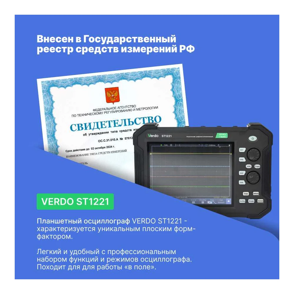 Купить Осциллограф планшетного типа VERDO ST1221 70 МГц, 2 канала, 8 бит ST122100 по лучшей цене с доставкой - интернет магазин №1 в России