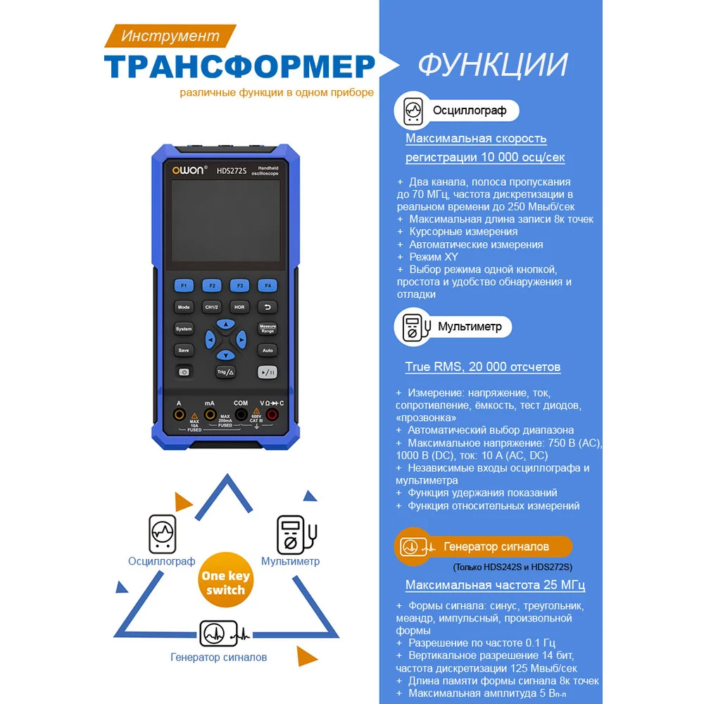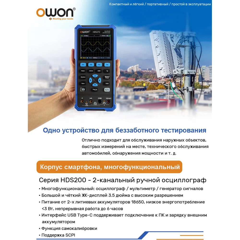 Купить Портативный осциллограф OWON HDS2102S OW117 по лучшей цене с доставкой - интернет магазин №1 в России