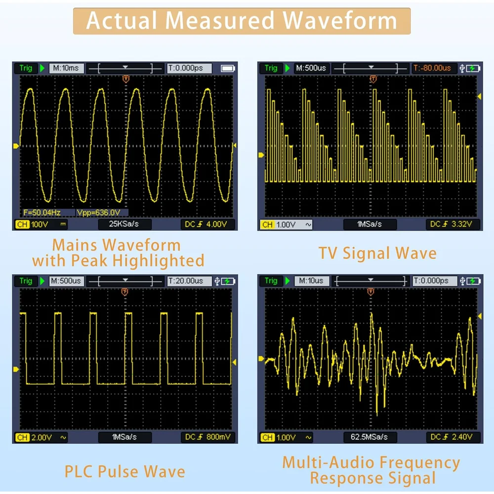 Комплектация Осциллограф; Аккумуляторы; USB-кабель Type-C для зарядки и подключению к ПК; Пассивный осциллографический пробник BNC,; Пробник BNC – крокодилы, щупы мультиметра,; Регулировочная отвертка,; Инструкция по эксплуатации