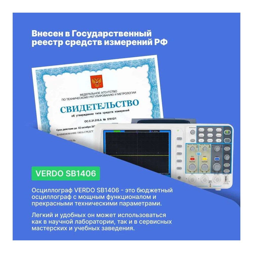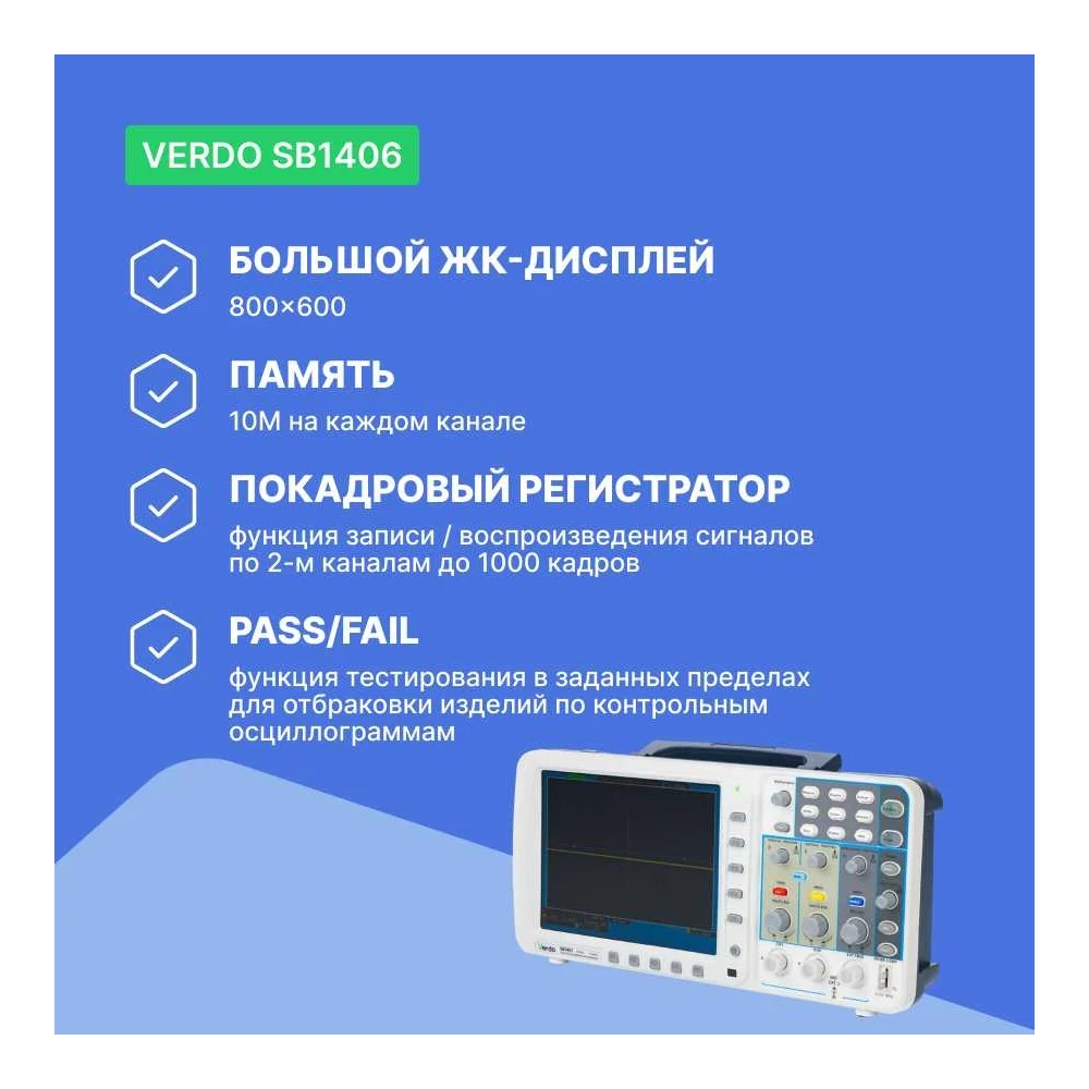 Купить Цифровой осциллограф VERDO SB1406 2 канала 300 МГц, дискретизация 8 бит-3,2 Гвыб,/c, 1,6 Гвыб/с на 2 каналах SB140600 по лучшей цене с доставкой - интернет магазин №1 в России
