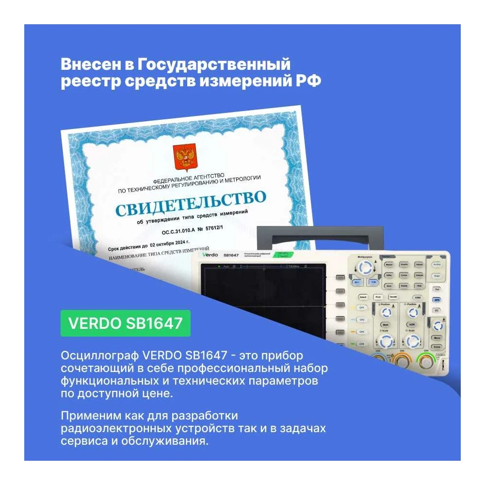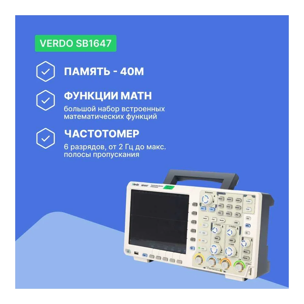 Купить Цифровой осциллограф VERDO SB1647 4 канала 200 МГц, АЦП 8/12/14 бит, макс. дискретизация 1 Гвыб,/c, 1 Гвыб/с на 2 каналах, 500 Мвыб/с на 4 каналах SB164700 по лучшей цене с доставкой - интернет магазин №1 в России