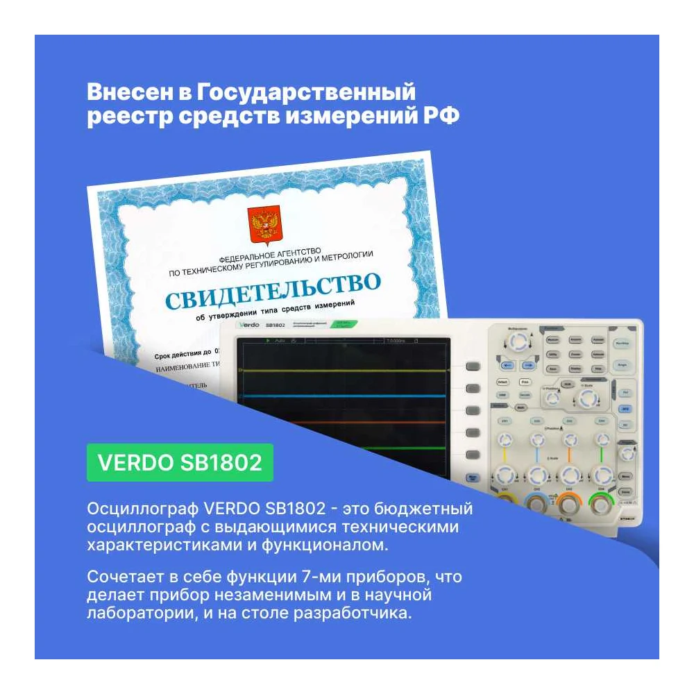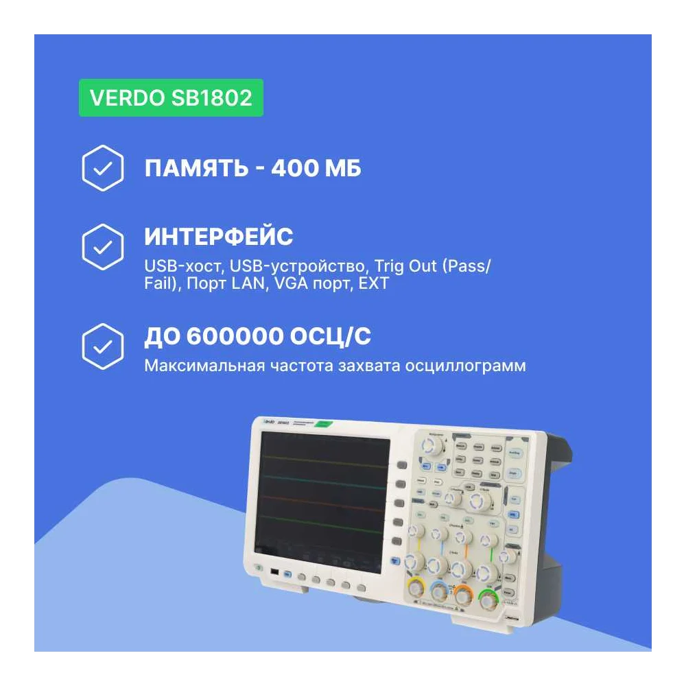 Купить Цифровой осциллограф VERDO SB1802 , 4 канала 350 МГц, 8 бит, 5 Гвыб/c, 400 МБ, цв. сенсорный ЖКД 10,4", 800x600, 39 автоизмерений, цифровые фильтры, декодир I2C, SPI, CAN, RS232, мультиметр-регистратор, генератор 50 МГц, USB, LAN, Pass/Fall, VGA SB180200 по лучшей цене с доставкой - интернет магазин №1 в России