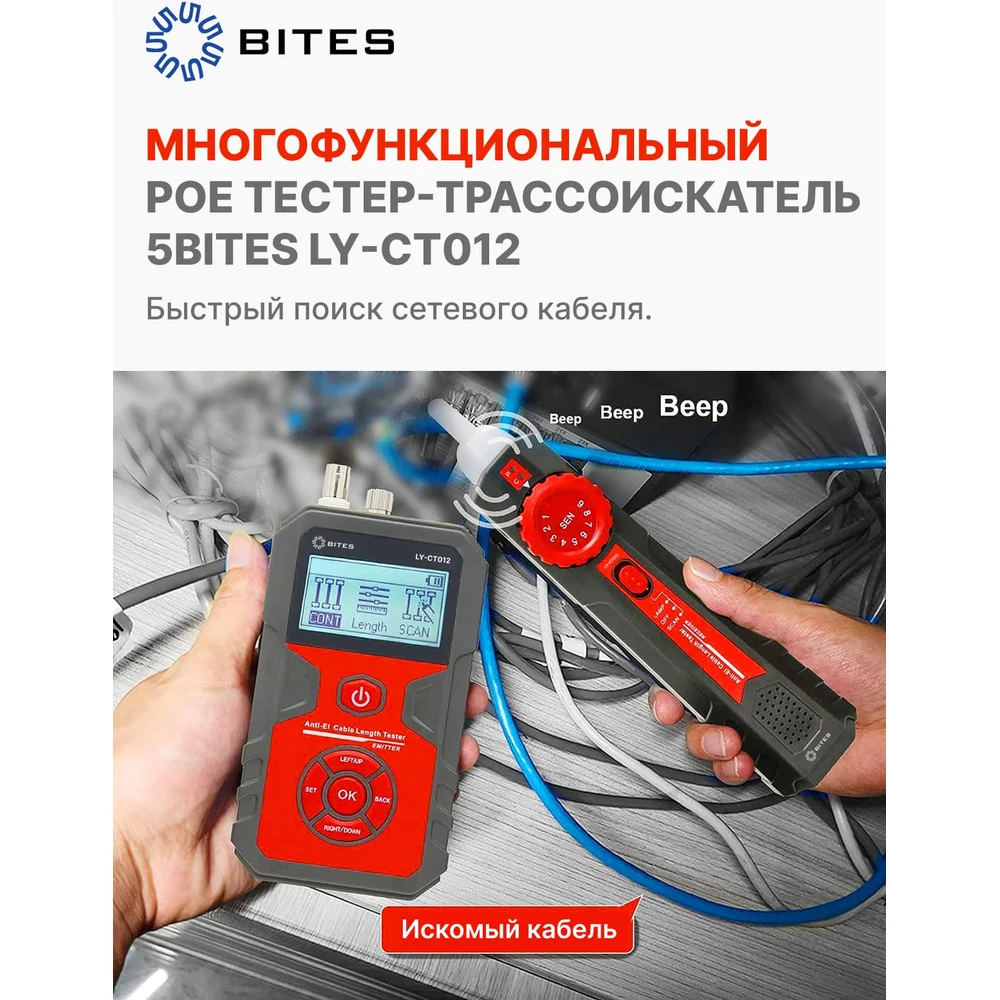 Купить Тестер-трассоискатель кабеля 5Bites UTP / STP / BNC / VFL / POE / TDR / LCD / FLASH LY-CT012 по лучшей цене с доставкой - интернет магазин №1 в России
