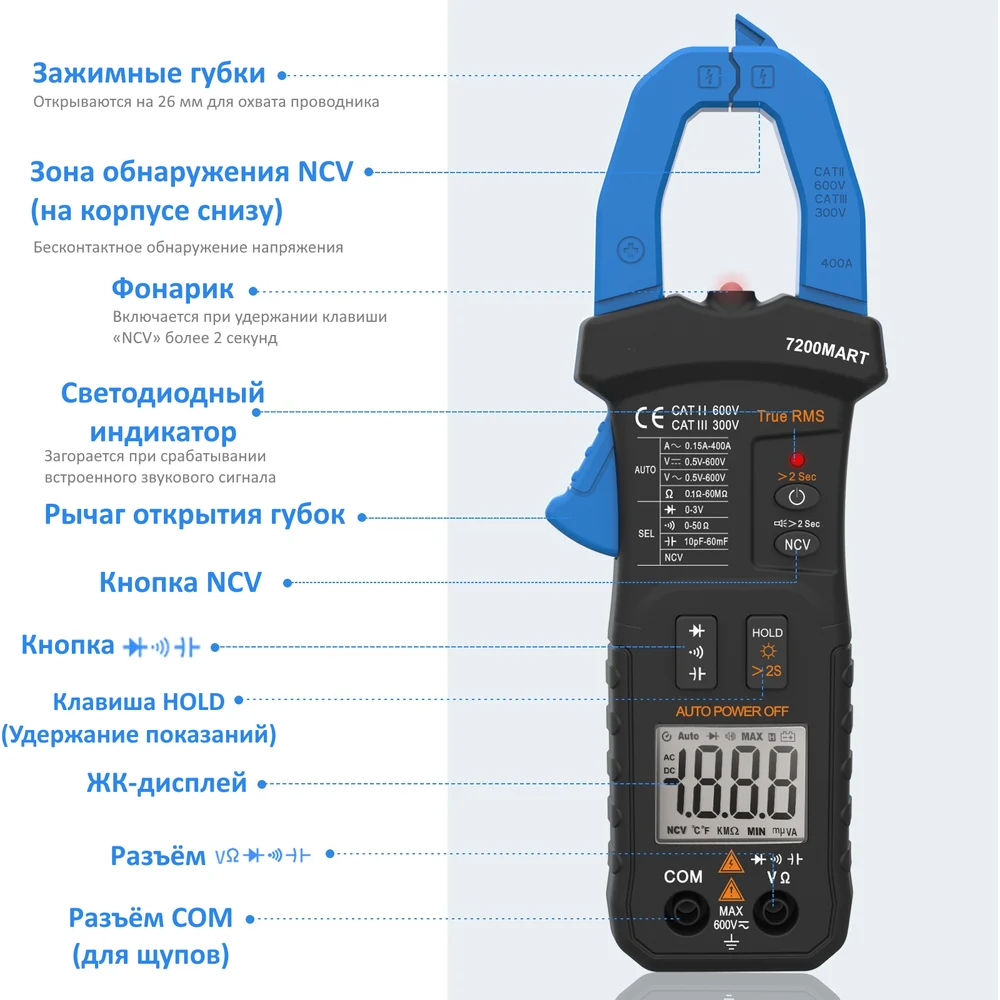 Купить Токоизмерительные цифровые клещи HoldPeak HP‑7200SMART по лучшей цене с доставкой - интернет магазин №1 в России