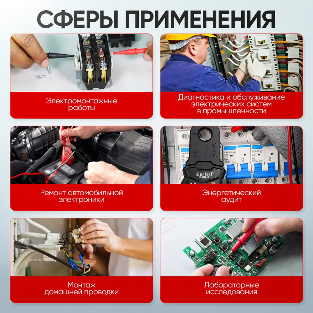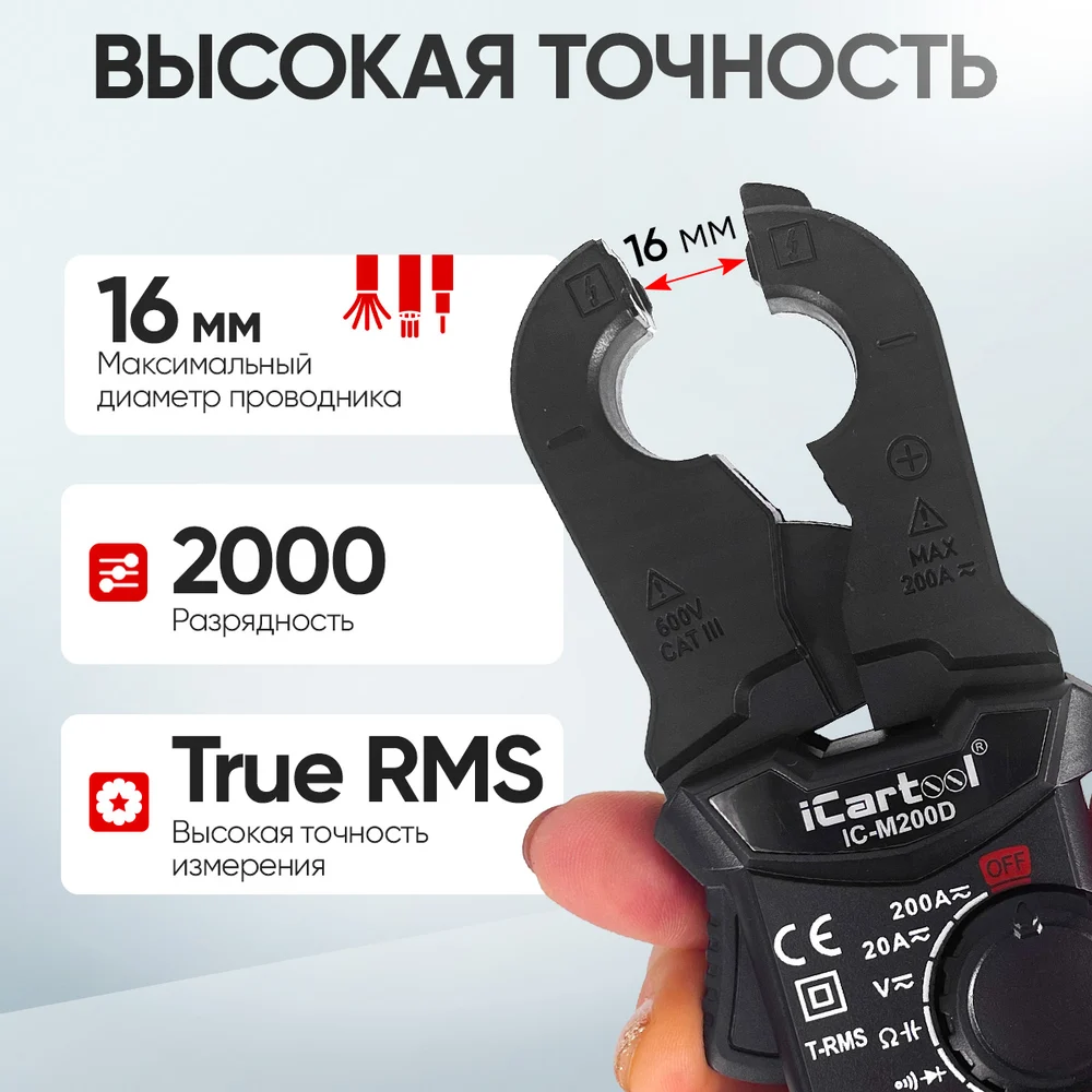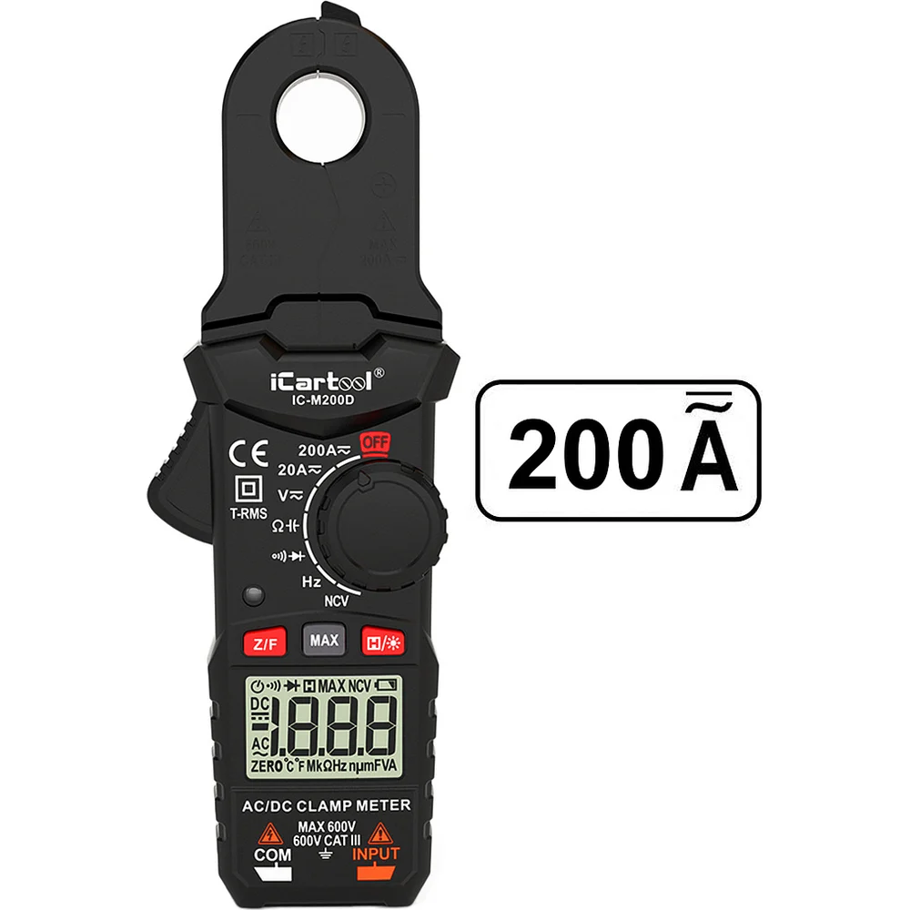 Купить Токовые клещи постоянного/переменного тока iCartool повышенной точности 200A IC-M200D по лучшей цене с доставкой - интернет магазин №1 в России
