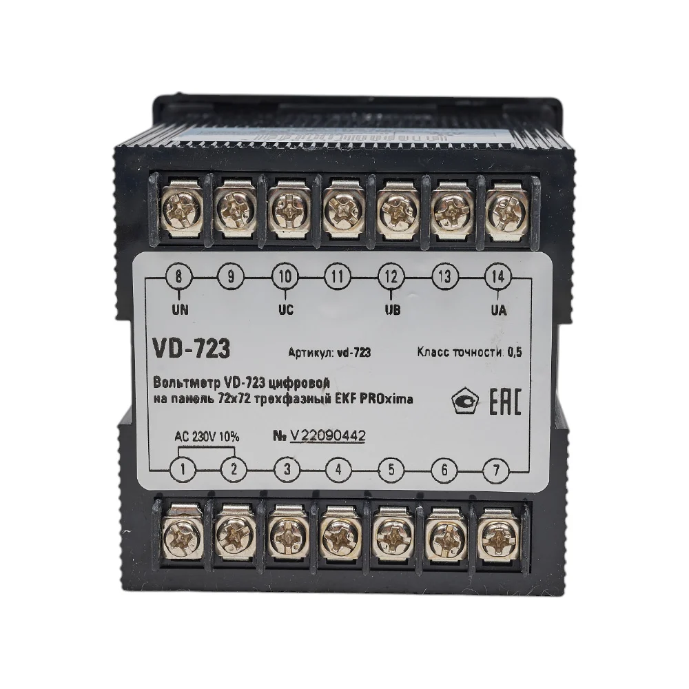 Цифровой вольтметр EKF PROxima на панель, 72х72, трехфазный vd-723