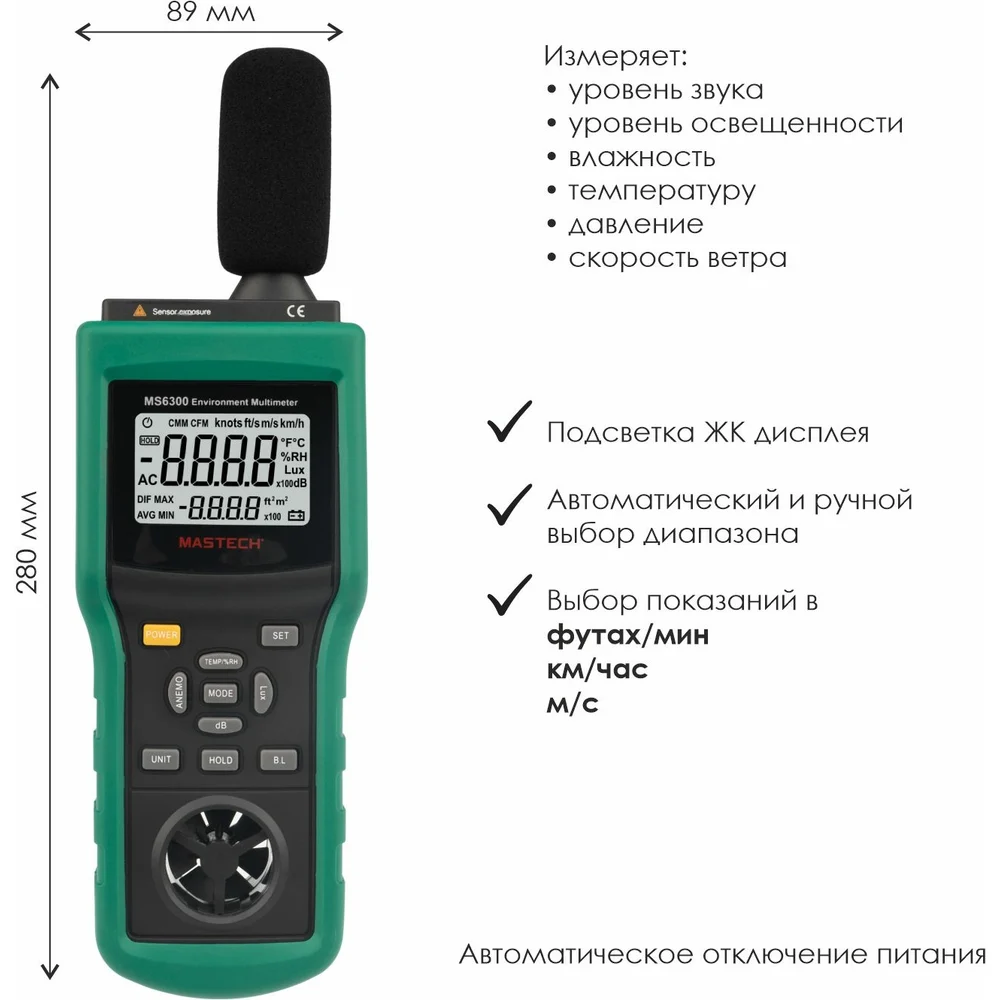 Купить Многофункциональный тестер окружающей среды MASTECH MS6300 00-00001302 по лучшей цене с доставкой - интернет магазин №1 в России