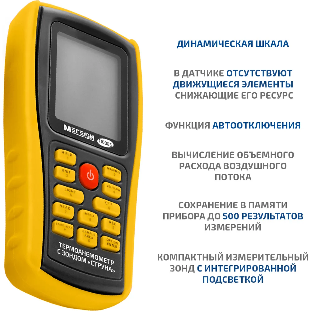 Купить Анемометр с зондом струна МЕГЕОН 11008 00000005947 по лучшей цене с доставкой - интернет магазин №1 в России