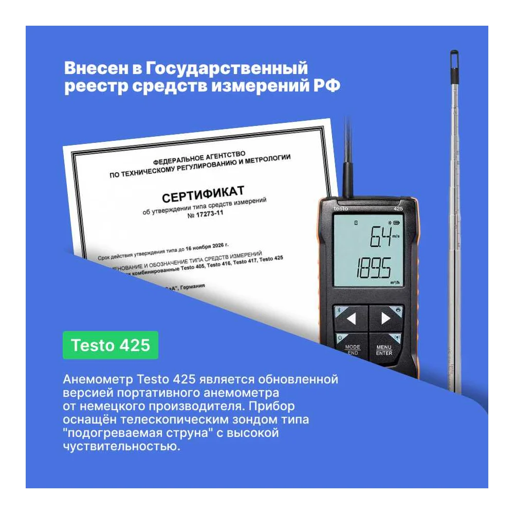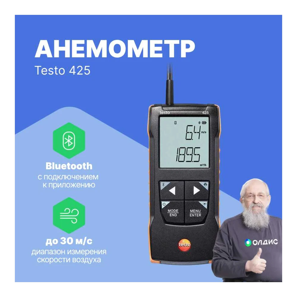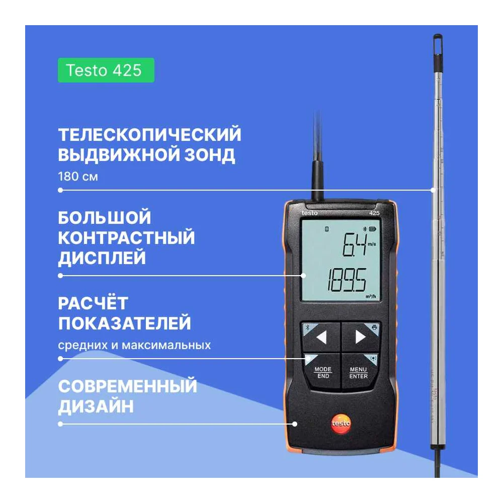 Купить Анемометр Testo 425 с подключением через приложение 0563 0425 по лучшей цене с доставкой - интернет магазин №1 в России