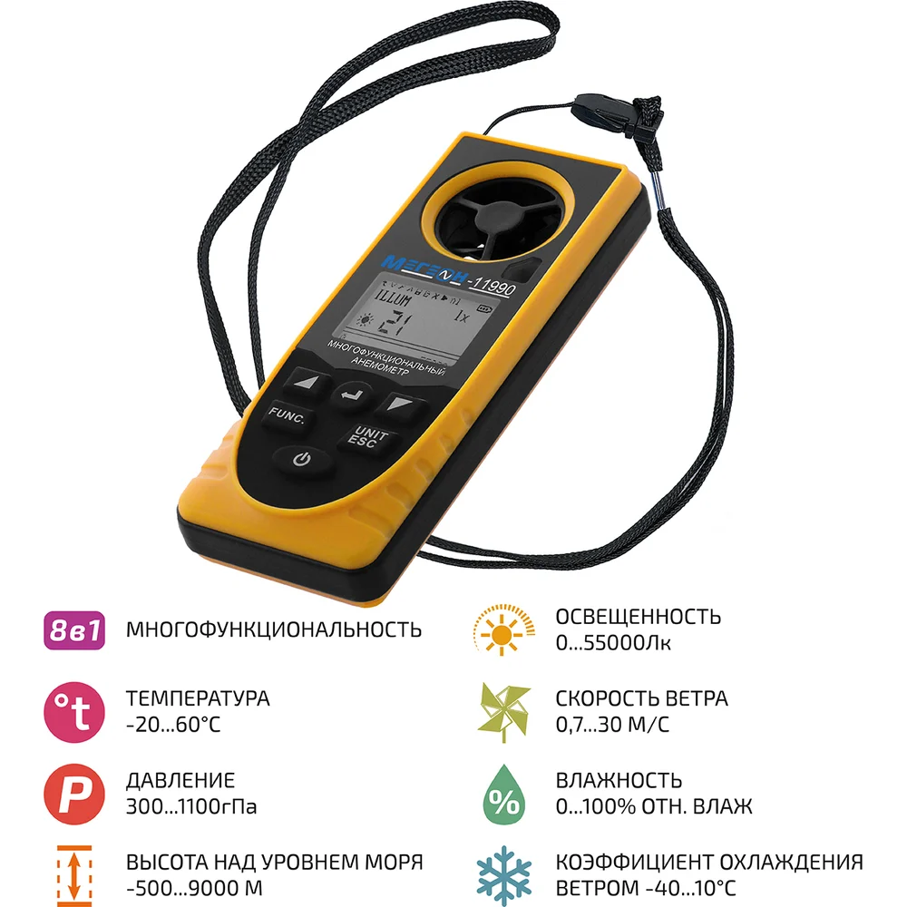 Купить Многофункциональный анемометр МЕГЕОН 11990 00000006475 по лучшей цене с доставкой - интернет магазин №1 в России