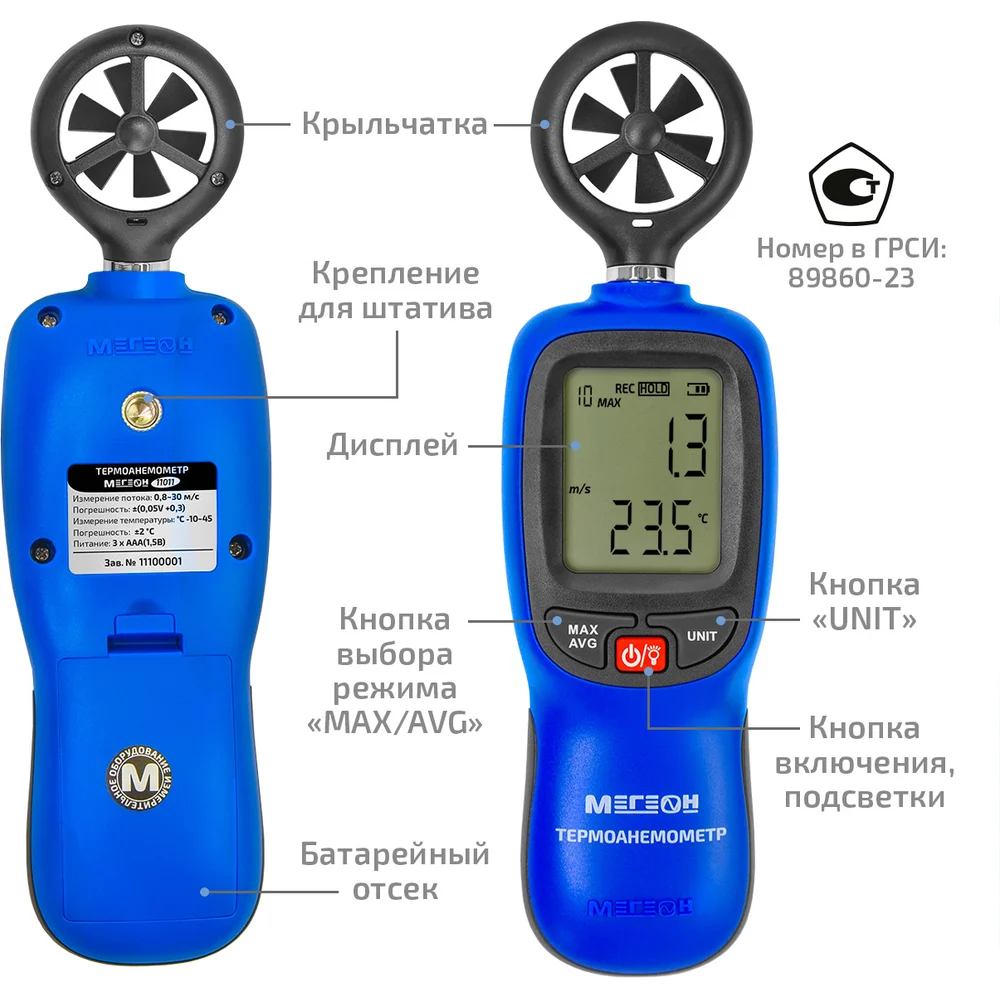 Купить Термоанемометр МЕГЕОН 11011 с поверкой к0000401762 по лучшей цене с доставкой - интернет магазин №1 в России