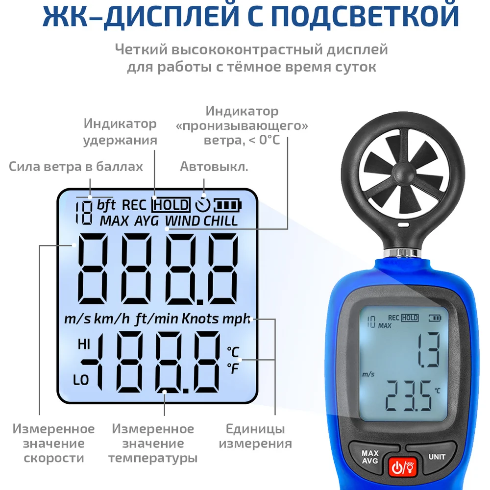 Диапазон измерения скорости воздуха от 0,8 до 30
