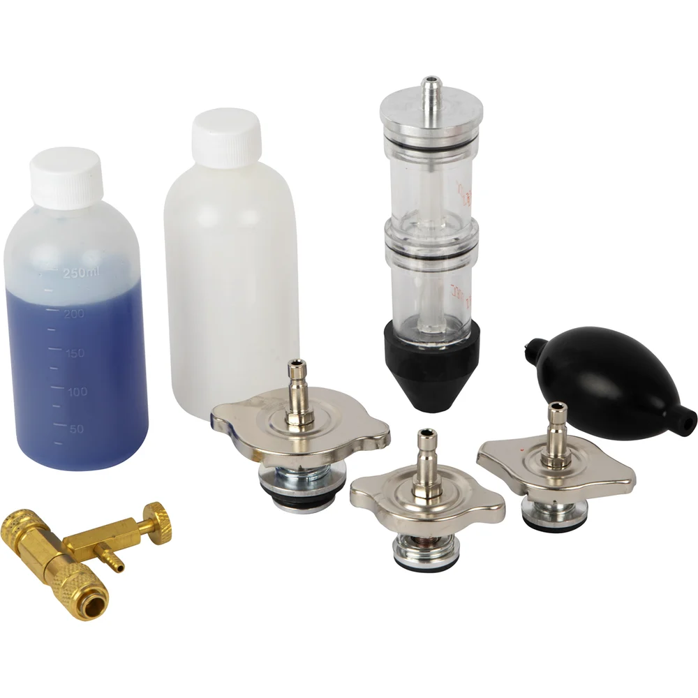 Комплектация крышки заливной горловины 3 шт,; устройство для обнаружения утечки,; индикаторная жидкость для СО2,; контейнер для использованной жидкости