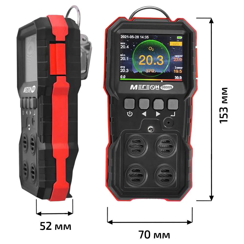 Диапазон измерений 0-30% (О2), 0-1000 μmol/mol (СО), 0-100 μmol/mol (H2S), 0-100 % LEL (горючие газы)