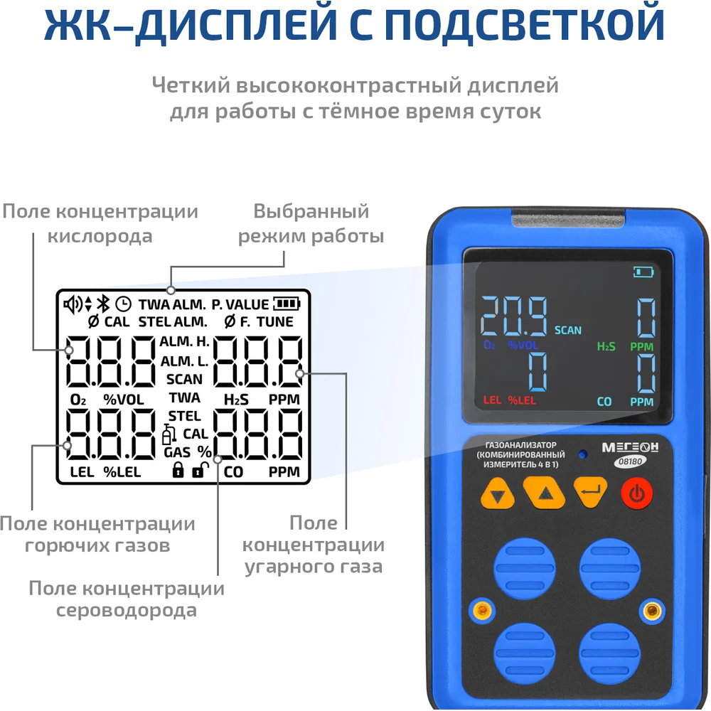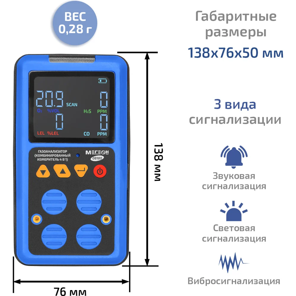 Купить Газоанализатор МЕГЕОН (комбинированный измеритель 4 в 1) 08180 к0000398805 по лучшей цене с доставкой - интернет магазин №1 в России