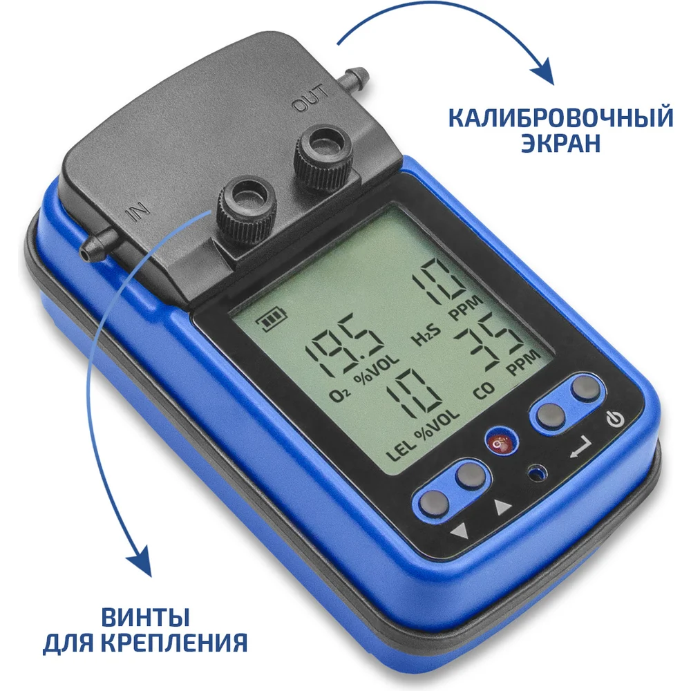 Диапазон измерений Кислород (О2): 0…30 %, Угарный газ (СО): 0…999 млн-1, Сероводород (H2S): 0…500 млн-1, Горючие газы: от 0 до 4,4 % (от 0 до 100 % НКПР)