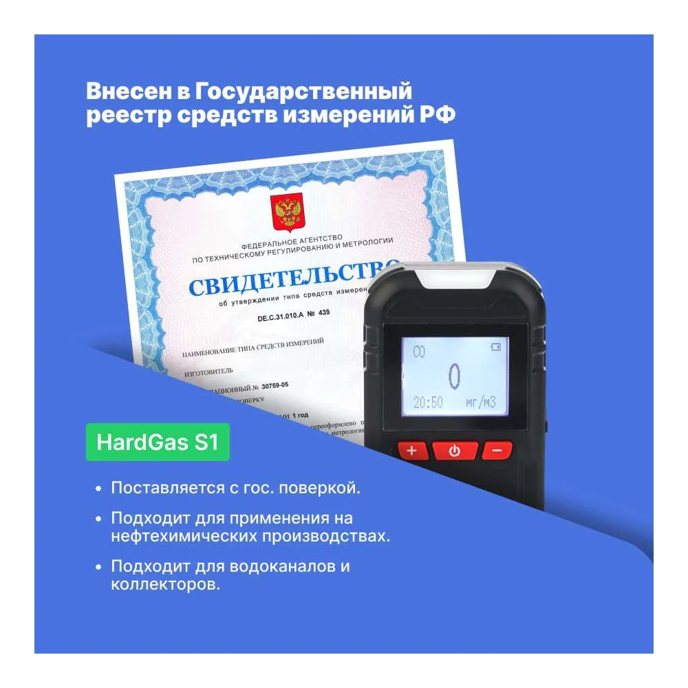 Купить Газоанализатор портативный одноканальный HardGas S1 (CO) с поверкой HP010001 HP010001-СП по лучшей цене с доставкой - интернет магазин №1 в России