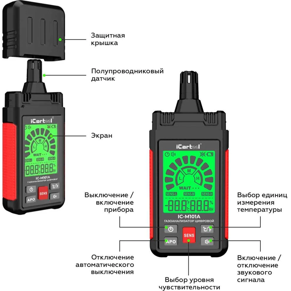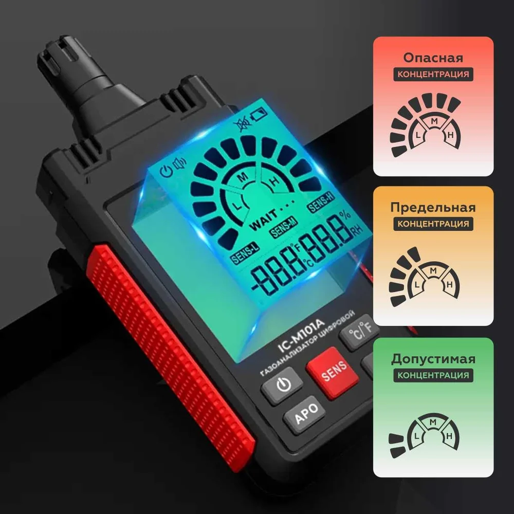 Купить Цифровой детектор утечки взрывоопасных газов iCarTool 0-1000 ppm IC-M101A по лучшей цене с доставкой - интернет магазин №1 в России